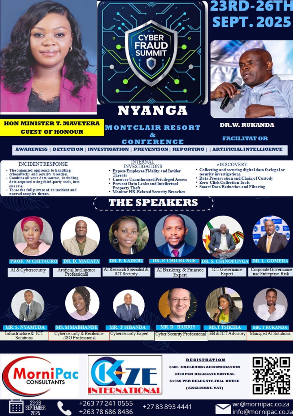 As digital transformation accelerates across Africa, so does the shadow of cybercrime. From financial fraud and ransomware to data breaches and identity theft, cyber threats are evolving at an alarming pace, leaving individuals, institutions, and governments scrambling to catch up. Against this backdrop, Zimbabwe is set to host the another edition of the Cyber Fraud Summit from September 22nd to 26th, 2025, at Montclaire Hotel in the serene town of Nyanga—a pivotal event aimed at confronting the growing cyber threat landscape head-on.